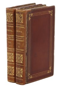 Londres, Ackermann, s.d. [1823]. 2 volumes in-16, veau fauve, filets dorés et frise à froid avec fleurons aux angles, dos lisse orné, dentelle intérieure, tranches dorées (Reliure de l'époque).Première édition, ornée de 30 jolies figures hors texte coloriées de costumes chinois.