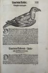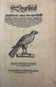 Première édition allemande de ce grand traité ornithologique, dû au naturaliste suisse Conrad Gessner (1516-1565), traduite par Rudolf Heusslin (ou Hüsli), qui était pasteur à Albisrieden, Rafz et Töss.