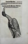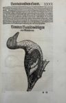 Zurich, Christoffel Froschouer, 1557. In-folio, demi-peau de truie estampée sur ais de bois apparents, encadrement de roulettes et de filets à froid, traces de fermoirs (Reliure de l'époque).Un des plus beaux livres d'oiseaux du xvie siècle.