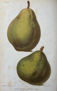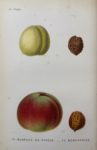 Très belle et rare publication de pomologie imprimée à Bourg-en-Bresse, par Adolphe Dufour. Les planches, lithographiées par Lefèvre, Grabowski et d'autres d'après Pingeon, se répartissent ainsi : I. Poires d'hiver (44 pl.) – II. Poires d'été (60 pl.) – III. Poires d'automne (88 pl.) – IV. Pommes tardives (44 pl.) – V. Pommes précoces (16 pl.) – VI. Prunes (40 pl.) – VII. Pêches (60 pl.) – VIII. Cerises et abricots (32 pl.).