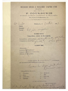Précieux bulletin de notes de l'élève Toulet au cours Courdurie daté du 29 décembre 1883 ; Un feuillet in-12.