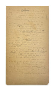Naguère : Texte autographe inédit qui raconte un mini congrès œcuménique. La conclusion en est que 80.000 juifs ne peuvent inquiéter sérieusement 40 millions de français. Un feuillet in-12, 31 lignes au crayon à papier.