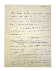 Lettre de WILLY avec un texte manuscrit de Toulet. Longue lettre de 23 lignes. Il se confond en excuses et lui confirme toute son admiration pour son œuvre et son travail. Toulet a profité d'une page vierge pour écrite un poème, Le cri qui sera...