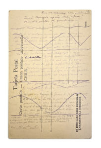 Carte postale sans date de Laguna de Los Horcones (Cordillera Chile). Vers évoquant le mariage de René DOUMIC, intitulé Sur un mariage bien parisien. Corrections et ajouts. Le reste de la carte postale est utilisé comme carnet de notes manuscrites.