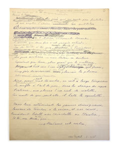 Le jour des morts. Epitre manuscrit repris dans Vers inédits sous le titre de, Epitre à ma muse. Un feuillet in-8, 19 lignes à l'encre violette. Corrections et rajouts au crayon.