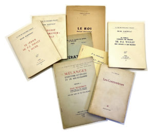 Bonnerot Librairie Nizet 1954/Henri MARTINEAU : Le séjour de Toulet à Alger. Le divan 1959 l'un des 60 ex de tête sur Arches/ Henri MARTINEAU, Toulet collaborateur de Willy Le Divan 1957, l'un des 60 ex de tête sur Arches/ Henri MARTINEAU, Toulet, son enfance, les collèges, l'île Maurice. Le Divan 1957. L'un des 60 ex de tête sur Arches/ Walzer Préface à la réédition des contrerimes Editions rencontre 1967/ Charles de BORDEU : Le roi dialogue philosophique préface de Catala et envoi de Catala. Bulletin des sciences, lettres et arts Bayonne 1965/ André LEBOIS 2 précurseurs des Châtiments, Barthelemy et Méry, et la Némésis. Faculté des lettres de Toulouse 1962. Dernières pages avec manques.
