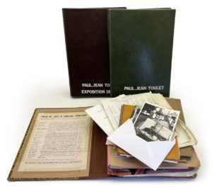 Important ensemble de coupures de presse et documents divers sur P.J Toulet. 2 classeurs in-8 et une forte chemise.