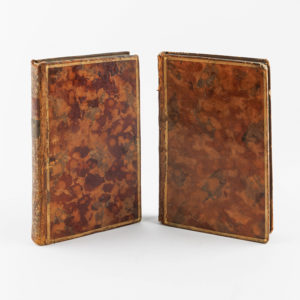 Poème sur les voyages et les découvertes portugaises des 15ème et 16ème siècles. Plein veau marbré, dos plats ornés, cadre de trois filets dorés sur les plats, tranches jasp., titre et tomaison sur étiquette de veau rouge et vert.