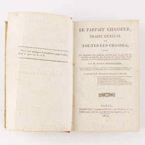 (chasse) Le parfait chasseur, traité général de toutes les chasses. Avec un appendice des meilleurs remèdes pour la guérison des accidents et maladies des chevaux de chasse et des chiens courants. Paris, Demonville/ Ferra, 1810. In-8°. 1blanco,...