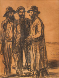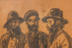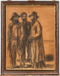 THEOPHILE STEINLEN (1859-1923) Sans titre (trois hommes en conversation), 1912. Fusain. Signé et daté au crayon. Avec dédicace mss. à 'G. Vanzevenberghen en toute amitié Steinlen Bruxelles 1912'. Cadre.