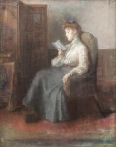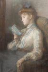 BRAMINE HUBRECHT (1855-1913) Femme qui lit. Pastel. Non signé. Cadre.