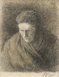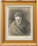 MODEST HUYS (1874-1932) Dentellière, ca. 1912. Fusain. Signé au fusain. Cadre.