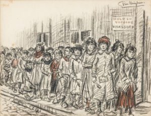 EUGEEN VAN MIEGHEM (1875-1930) Fusain, craie brune. Signé. Petites taches de rouille en haut à gauche. Cadre. Provenance : ancienne collection Frans Mertens Expo: Kunstzaal Palace Hotel Scheveningen, 1919, n° 47.