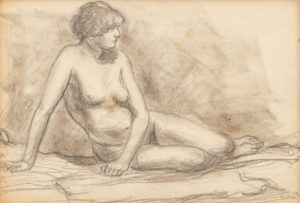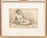 EUGEEN VAN MIEGHEM (1875-1930) Sans titre. Nu assis. Crayon. Monogramme au crayon. Cadre.
