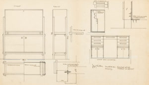 JOZEF PEETERS (1895-1960) Sans titre (projet de secrétaire à l'échelle 1/8). Plume à l'encre de Chine. Signée à l'encre. Cadre. Provenance: Ronny Van de Velde, Anvers.