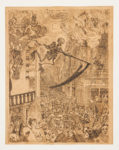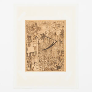 JAMES ENSOR (1860-1949) Eau-forte et pointe sèche sur Japon. Signée dans la plaque. Montée aux quatre coins sous passe-partout. Feuille brunie.