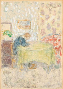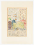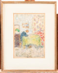 EUGEEN VAN MIEGHEM (1875-1930) Sans titre (femme à table), vers 1925 Monotype,rehaussée. Signé au crayon. Bords assombris. Cadre.