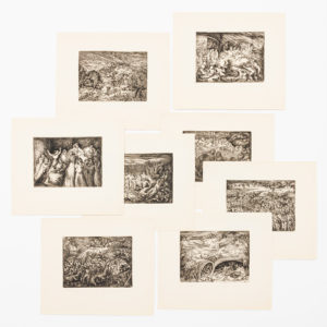 JACQUES BOONEN (1911-1968) Farde avec huit eaux-fortes. Un des 150 ex. num. à la main sur Velijn Pannekoek, no. 44. Toutes les planches sont signées et titrées au crayon, et sont accompagnées d'une feuille de papier craie. Chemise d'origine.