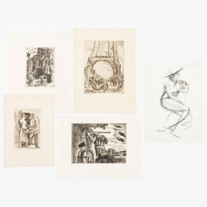 MARCEL GROMAIRE (1892-1972) Lot varié de quatre eaux-fortes, signées et numérotées au crayon (sur 30 ex.): - Couple, 1926. Monogramme et date dans la planche. - Sous la Tour Eiffel. - 'Marin au cabaret'. - Chasseur. Tot.: 4 ex.