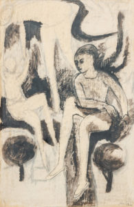 JAN COX (1919-1980) Sans titre, 1949. Plume et pinceau à l'encre de Chine, légère rehaut de gouache. Signé et daté à l'encre. Cadre