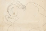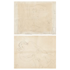 OSSIP ZADKINE (1890-1967) Sans titre. Crayon gris. Série de deux. Un signé au crayon. Les deux avec une dédicace manuscrite, une à Paul-Gustave Van Hecke. Les deux feuilles sont brunies et endommagées par l'humidité. Toutes deux dans un cadre.