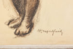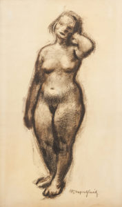 HUBERT MALFAIT (1898-1971) Sans titre (nu debout). Fusain, lavis d'encre. Signé au fusain. Cadre.
