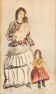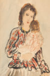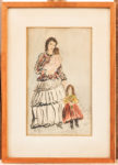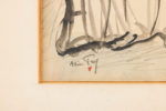 ALICE FREY (1895-1981) Pinceau à l'encre de Chine, aquarelle. Signé au crayon. Avec dédicace manuscrite à l'encre 'A mademoiselle R. Hostie'. Cadre. Expo: Liège, Salon Quattrienal de Belgique, 1953.