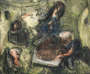 FRED BERVOETS (°1942) Eau-forte, rehaussée d'aquarelle et de gouache. Signature grattée. Cadre.