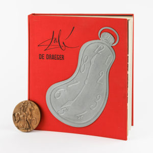 SALVADOR DALI (1904-1989) Médaille, bronze. Monogrammé dans la médaille et numéroté au verso 105. Fait partie de l'un des 1500 exemplaires de luxe du catalogue 'Dalí de Draeger' (Paris, 1968). 4to. Reliure en toile rouge avec une 'Montre molle'...