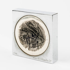 ARNALDO POMODORO (°1926) Epreuve en bronze argenté et chromé. Signée, datée et numérotée 152/250 et numérotée 1/152 au recto. Traces d'usage.
