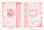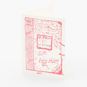 MARCEL BROODTHAERS (1924-1976) Le Corbeau et le Renard. Anvers, Wide White Space, 1972. Carte d'invitation. Reproduction d'un dessin de MB au recto et au verso de la couverture. Imprimée en rouge et noir. La première version, annoncée sur 40...
