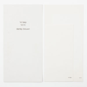 STANLEY BROUWN (1935-2017) 1x1 step/ 1x1m. Antwerp/ Brussels, Gallery Micheline Szwajcer/ Yves Gevaert, 1986. Large folio. One of the 500 unnumbered copies. White card folder containing two folded sheets, each with black offset printing.