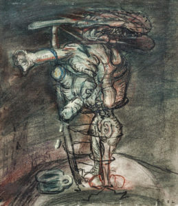 FRED BERVOETS (°1942) Eau-forte, rehaussée d'aquarelle, de crayon, de fusain, de crayon de couleur. Monogramme et date au crayon. Cadre.