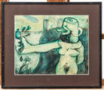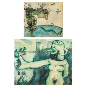 FRED BERVOETS (°1942) Eau-forte, rehaussée à l'aquarelle. Signée au crayon. Cadre. On joint du même: Sans titre, c. 1972. Eau-forte, rehaussée d'aquarelle. Signée au crayon. Cadre.
