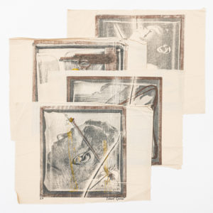 DANIEL SPOERRI (°1930) Lithographie sur toile. Un ensemble de quatre (sur neuf). Toutes signées au feutre. Annotation 'EA'.