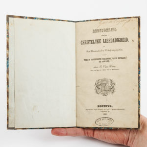 Bruno Van Hove - Redevoering over de Christelyke Liefdadigheid. Kortrijk, Eugène Beyaert, 1856. 8vo. 21 gen.pp. Exemplaar uit de bibliotheek van Guido Gezelle, met zijn handtekening bovenaan het titelblad. Eveneens met stempel 'Petit Séminaire de...