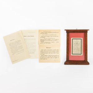Guido Gezelle - Origineel bidprentje. Kader. Bijgevoegd: Vier pamfletten/ strooibrieven/ open brieven n.a.v. zijn overlijden, verspreid in Kortrijk. Alle gedrukt bij Beyaert in Kortrijk.