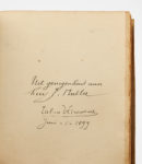 aan band, binnenin heel fris. Met handgeschreven opdracht door De Praetere op tweede blanco schutblad: 'Uit genegenheid aan/ J. Haller/ Julius de Praetere/ Juni - 8 - 1899'. Jozef Haller von Ziegesar was een vroege kennis van De Praetere en schreef al betrekkelijk snel lovend over zijn activiteiten, ondermeer over de catalogus voor de Ausstellung in Krefeld, uit 1898. Vroege opdrachten, zoals deze vlak na het verschijnen van de bundel, zijn uitermate zeldzaam.