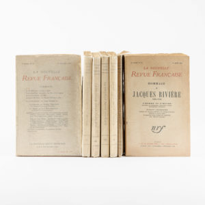 Hommage à Jacques Rivière 1886 - 1925. La Nouvelle Revue Française, 1925. 8vo. Br. sous couv. orig. Livr. du 1er Avril, 1925. Et: Id. Livr. du 1 Mars, 1925. Le dernier num. que Rivière avait composé, établi et pesé.