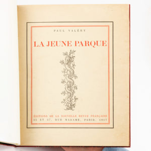 Paul Valéry - Le Jeune Parque. Paris, Editions de la Nouvelle Revue Française, 1917. 8vo. Un des 575 ex. num. à la main sur Vergé d'Arches, nr. 548, après 25 ex. sur Japon Impérial. Avec une lettre aut. signée sur papier deuil, 8vo, recto/...