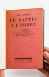 Jean Cocteau - Le rappel à l'ordre. Paris, Librairie Stock, 1926. 8vo. 296 pp.num. Parmi les 28 ex. de tête sur Japon, un des 3 hors commerce, lettré 'B', celui de l'éditeur Maurice Delamain. Rel. mod. en demi-box bleu/ vert à bandes, plats de...