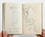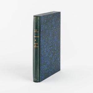 Avec autre dessin à la mine de plomb sur le deux. feuillet blanc représentant deux têtes en profils, signé et daté '1956'. Rel. mod. en demi-veau bleu à bandes, plats de papier peint à la main de tons or, noir et bleu, serti d'un double filet doré, dos lisse (pâli), étui bordé du même (A. Masui). Provenance: Lowie Peeters; Jos Verheyen.