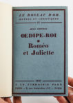 Jean Cocteau - Oedipe Roi/ Roméo et Juliette. Paris, Librairie-Plon, (1928). 8vo. 201 pp.num. Un des 4750 ex. sur papier d'alfa, nr. 4333. Avec déd. aut. signée et dessin au verso du prem. feuillet blanc: 'à vous/ cher Armand (?)/ Jean Cocteau'....
