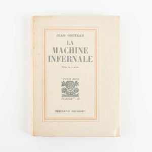 Jean Cocteau - La Machine Infernale. Pièce en 4 actes. (Paris), Bernard Grasset, (1934). 8vo. 224 pp. num. Édition originale, suivie d'une suite de 16 dessins inédits de Jean Cocteau intitulée 'Le Complexe d'Œdipe' (1924). Parmi les 19 ex. de...