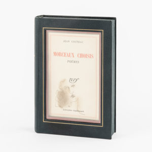Jean Cocteau - Morceaux Choisis. Poèmes. (Paris), Librairie Gallimard, (1932). 8vo. 172 pp.num. Parmi les 82 ex. de tête sur pur fil Lafuma Navarre, un des 30 ex. d'auteur hors commerce, nr. 36. Avec belle dédicace aut. signée et dessin d'une...