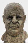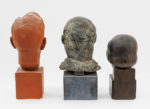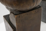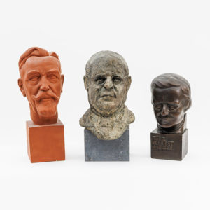 Trois bustes: 1. Albert Poels (1903-1984). Buste représentant Ernest Claes. Plâtre patiné brun. Signé. H.: 56 cm. 2. Frans Lamberechts (1909-1988). Buste représentant Hugo Verriest. Plâtre patiné en bronze. H.: 39 cm. 3. Illisible. Buste....