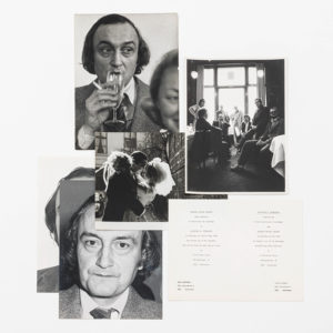 Philippi - Hugues C. Pernath/ Adrienne (Jen) Daelemans (4 april, 1959). Originele zwart-witfoto. Naam fotograaf op verso (170 x 230 mm). Deze foto is van het eerste huwelijk van Pernath, dat al na enkele jaren op de klippen loopt. En: Pink Poets. Orig. zwart-witfoto. Foto van de Pink Poets. Achteraan v.l.n.r: Nic van Bruggen, onbekend, Ivo Michiels. Vooraan v.l.n.r.: Georges Adé, Werner Spillemaeckers, Michel Bartosik, Henri Floris Jespers en Patrick Conrad. Foto genomen in restaurant La Rade, Ernest Van Dijckkaai 8 in Antwerpen, op 8 april 1978. 240 x 180 mm. En: Gerald Dauphin - Hugues C. Pernath. Orig. zwart-witfoto. Met stempel fotograaf op verso. 240 x 180 mm. En: Paul Van den Abbeel - Hugues C. Pernath. Originele zwart-witfoto. Met stempel fotograaf op verso. 240 x 180 mm. En: Anoniem - Idem. Met zetaanwijzingen in blauwe en rode bic op verso.
