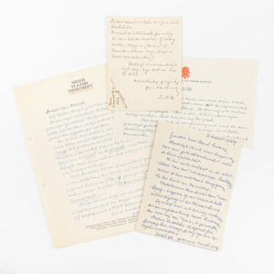 Herman Teirlinck - Paul Snoek. Drie handgeschreven brieven en een briefkaart. Blauwe bic, recto. Alle getekend en gedateerd tussen '10-12-58' en '2.11.61'. De eerste brief op papier met hoofding 'Nieuw Vlaams Tijdschrift', tweede met hoofding...