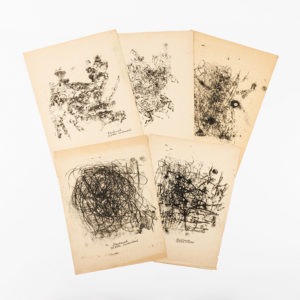 PAUL SNOEK (1933-1981) Zonder titel, 1958. Frottages/ zwarte inkt. Reeks van vijf. Alle getekend en gedateerd in zwarte inkt. De vermelding 'Köln-Lindenthal' verwijst naar de plaats waar Snoek (tijdelijk) gekazerneerd was. Drie in opstaand formaat...