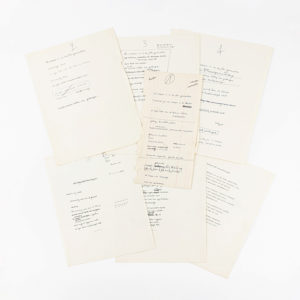 Paul Snoek - 'Sonnet met winterlippen'. Volledig handschrift (klad- en net versie) van dit ongepubliceerd gedicht (opgenomen in 'Verzamelde Gedichten', p. 705): tien bladen met verschillende kladversies en aanzetten, genummerd bovenaan; A4,recto,...